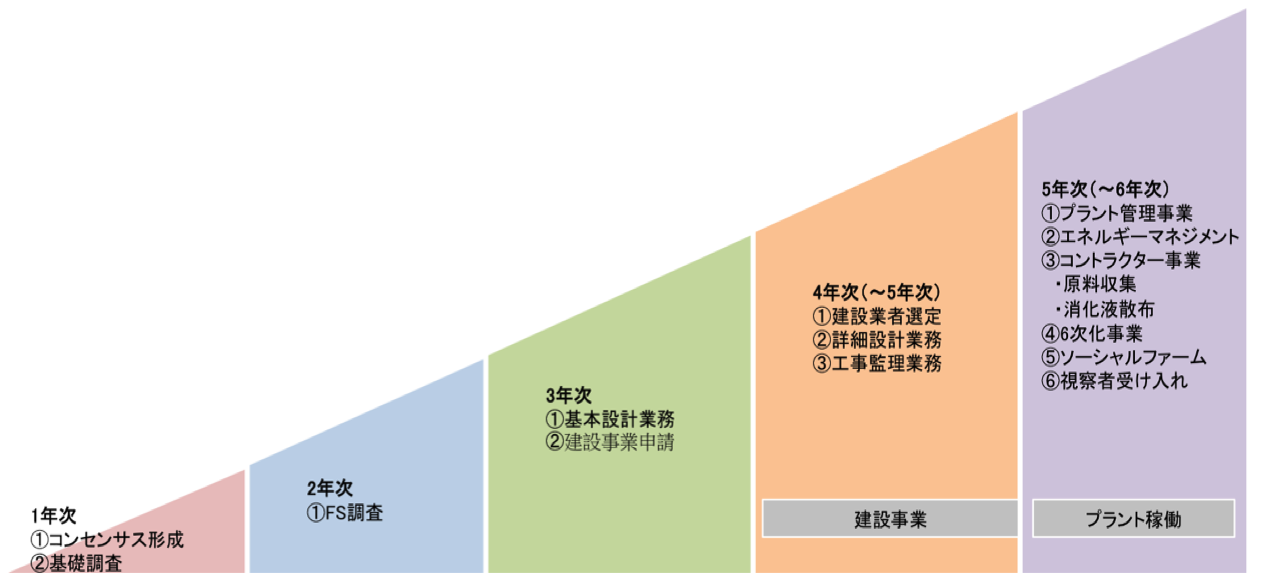 当社では事業の開始に関して、下図のようにコンセンサス形成から5〜6年程度の期間で導入に向けた取り組みを実施しています。